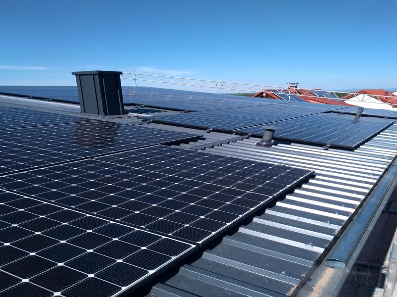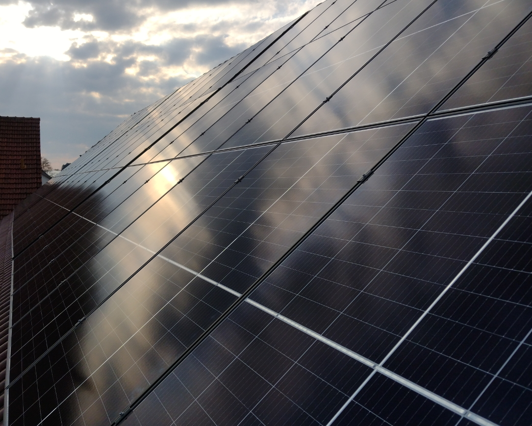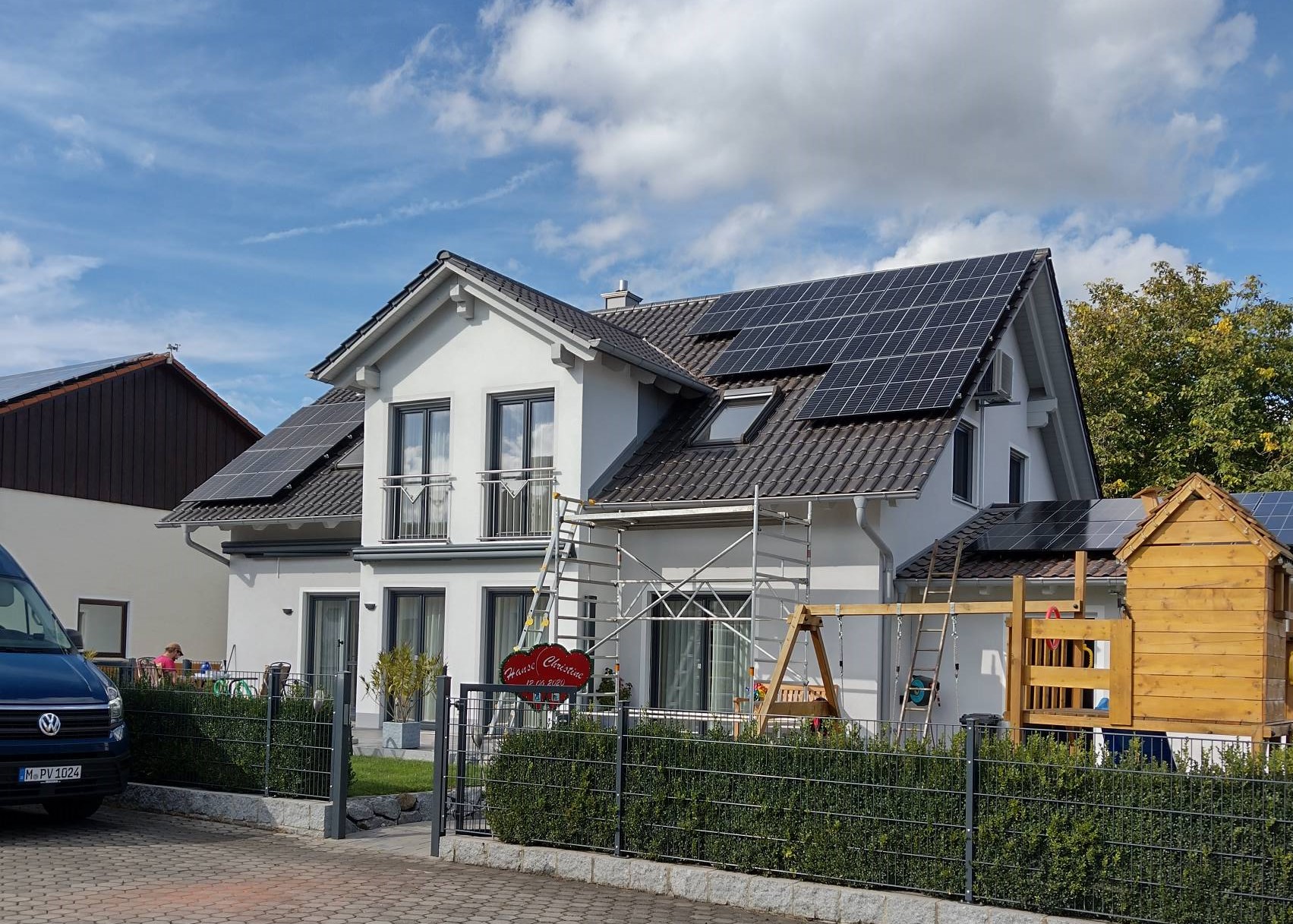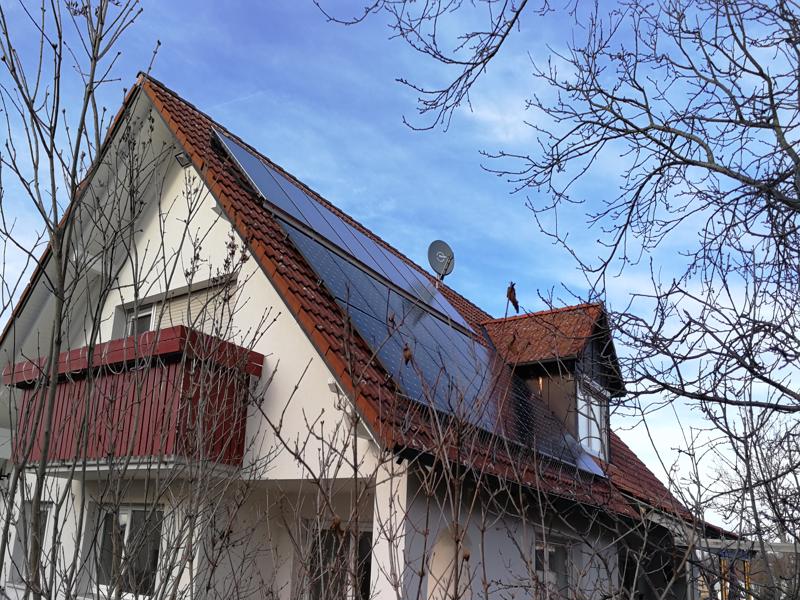 Beschreibung: Ziegeldach mit Südausrichtung, Einspeisemanagement mit Sungrow-Meter, Leistungsreduzierung 70% am Netzverknüpfungspunkt.