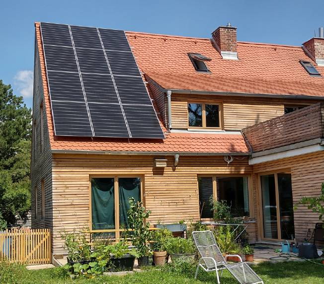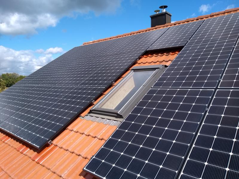 Beschreibung: Ziegeldach mit Südausrichtung, Einspeisemanagement mit SMA Homemanager, Leistungsreduzierung 70% am Netzverknüpfungspunkt.