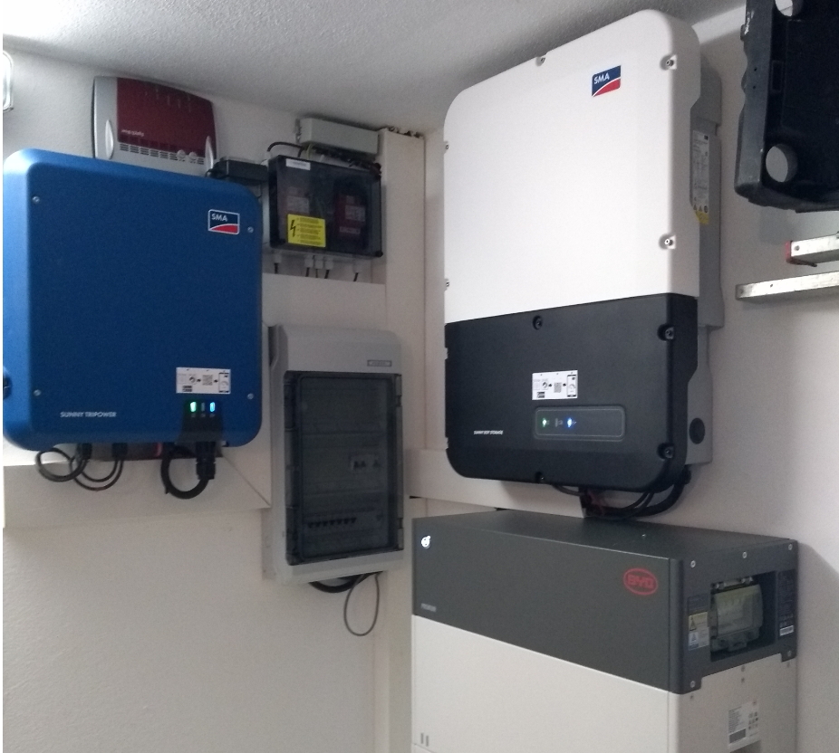 Wechselrichter: SMA STP 5.0-3AV-40, SMA SB3.0 und SMA SBS6.0, Stromspeicher BYD B-Box HVM mit 13,8 kWh